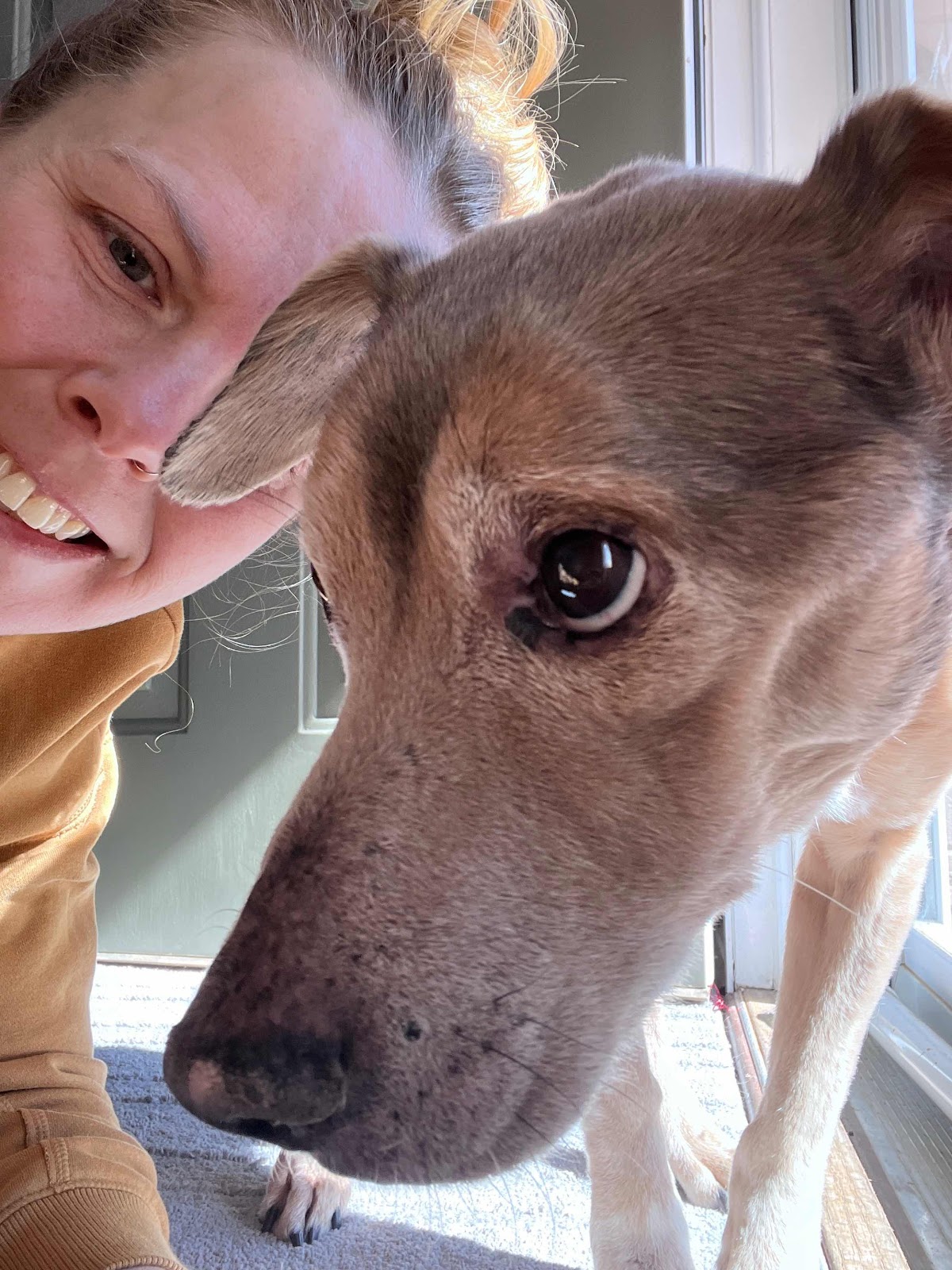 For Sam's last day Russell had the idea to take him on a walk. We went down by this nature spot in town. Sam did what he does, smelling and walking! It was so bittersweet. When we got home a vet came and within 30 minutes Sam had passed. It was quick. It was the comfiest I have seen Sam in years. While we had multiple conversations in the past few months of whether it was time or not, I think we all agreed that we made the right choice. At home euthanasia is truly beautiful. Sam didn't have to go to the vet, which he hated...probably due to nail trims. All the kids were able to sit on the couch with comfy blankets. Russell and I were on the floor with Sam. I know he felt loved.